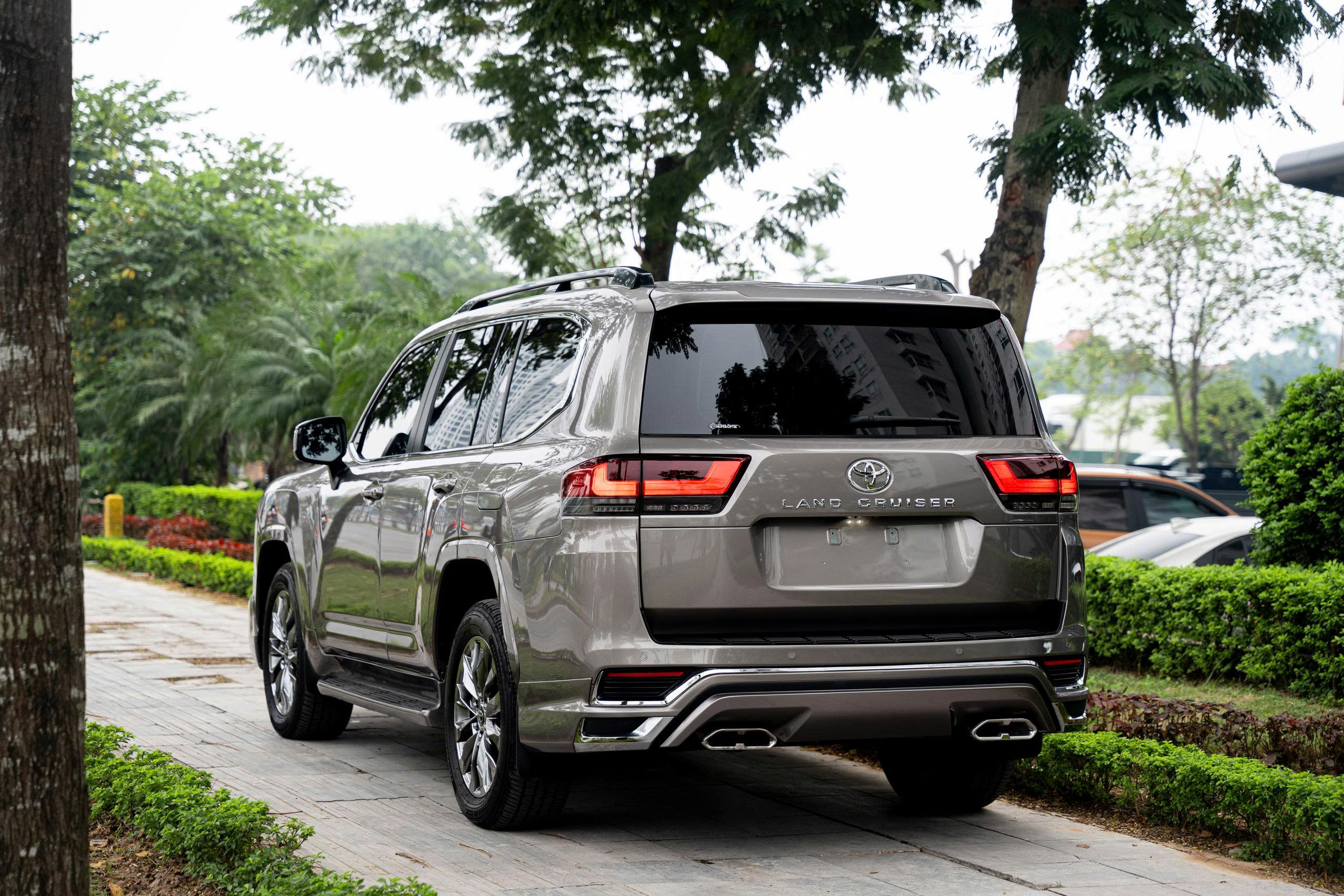 LC300 nguyên bản sử dụng bộ mâm 20 inch đi kèm lốp 265/55R20, mang đến sự cân bằng giữa vận hành đa địa hình và hiệu suất trên đường nhựa. Các chi tiết ốp thân xe, vòm bánh xe và viền cửa được thiết kế đơn giản, giữ lại phong cách SUV thuần chất, phù hợp với khách hàng có sở thích bền bỉ và ít bị lỗi thời theo thời gian.